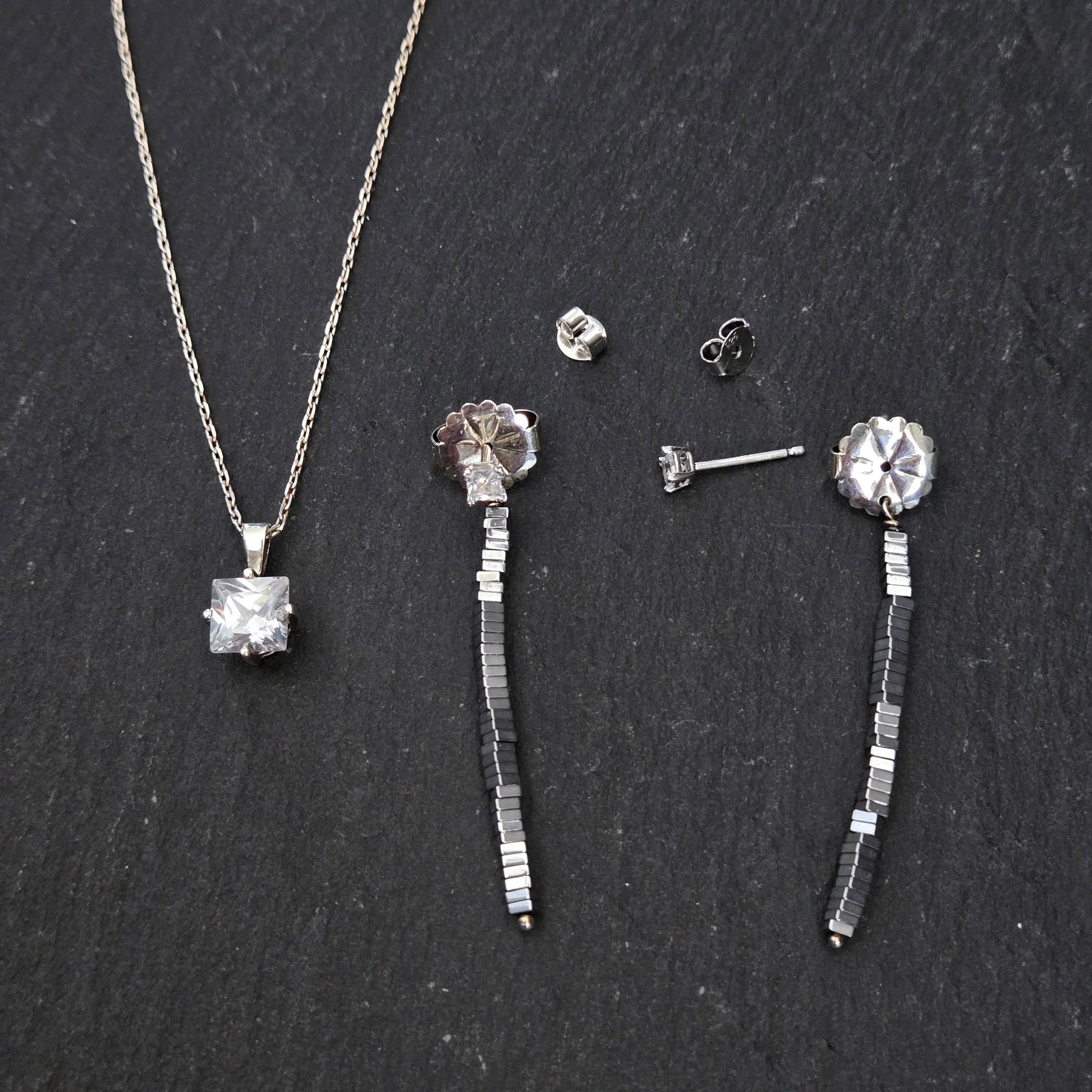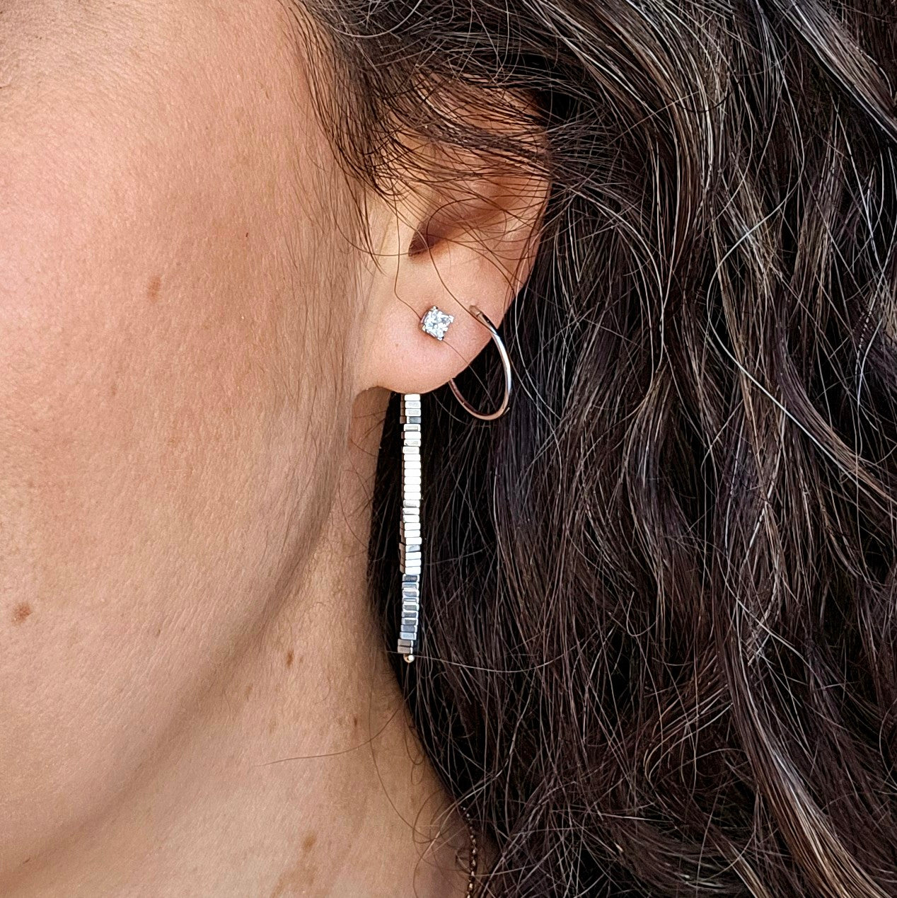 Boucle d'oreilles 1 pouce et demi d'hématite silver et cz 3mm
